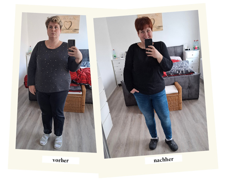 Karin hat 30 kg abgenommen und damit ein deutlich besseres Lebensgefühl und keine Kurzatmigkeit mehr bei Belastungen erreicht.